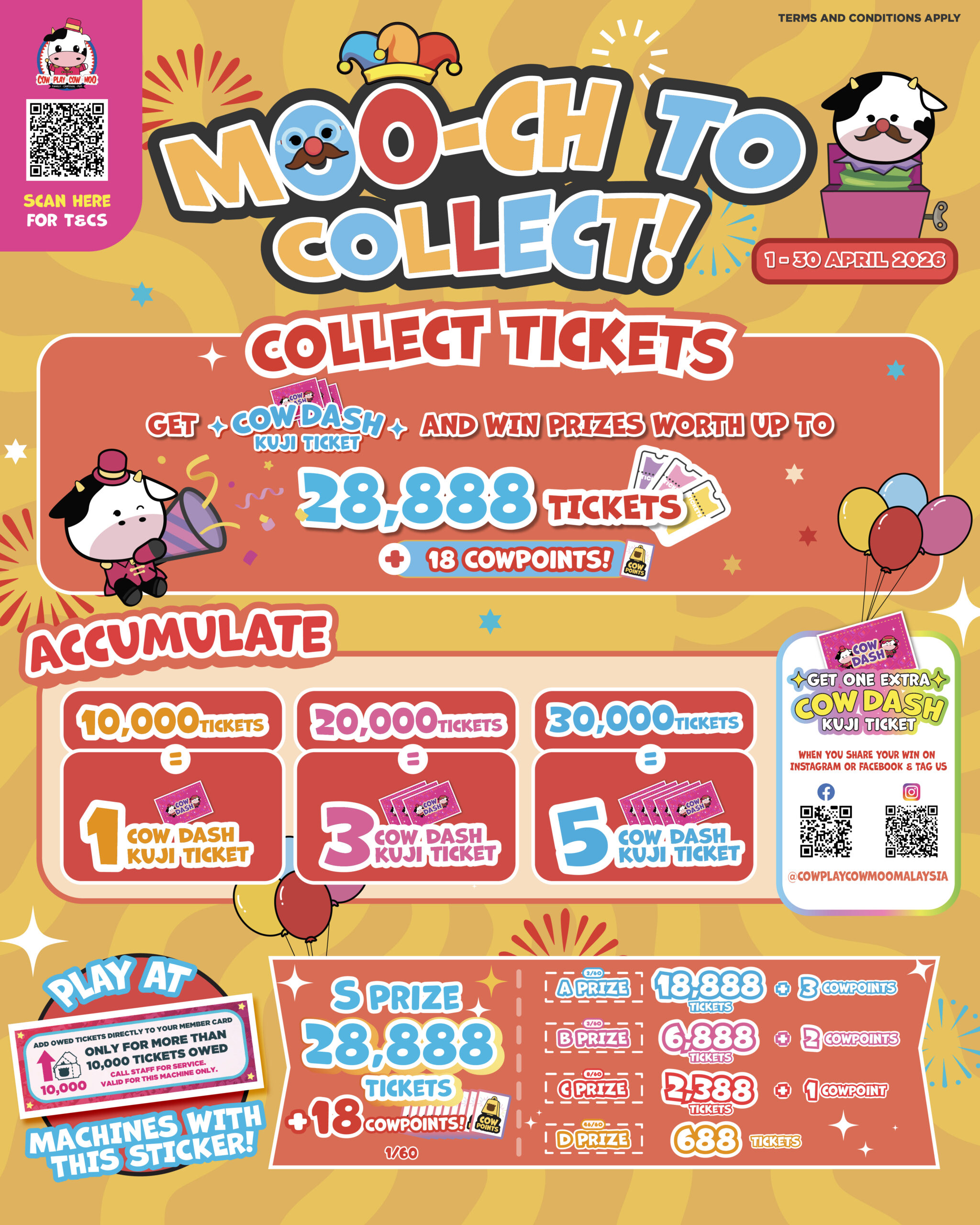 Tip: Get ONE (1) extra Cow Dash Ticket when you share your win on Instagram or Facebook & tag us @cowplaycowmoomalaysia.