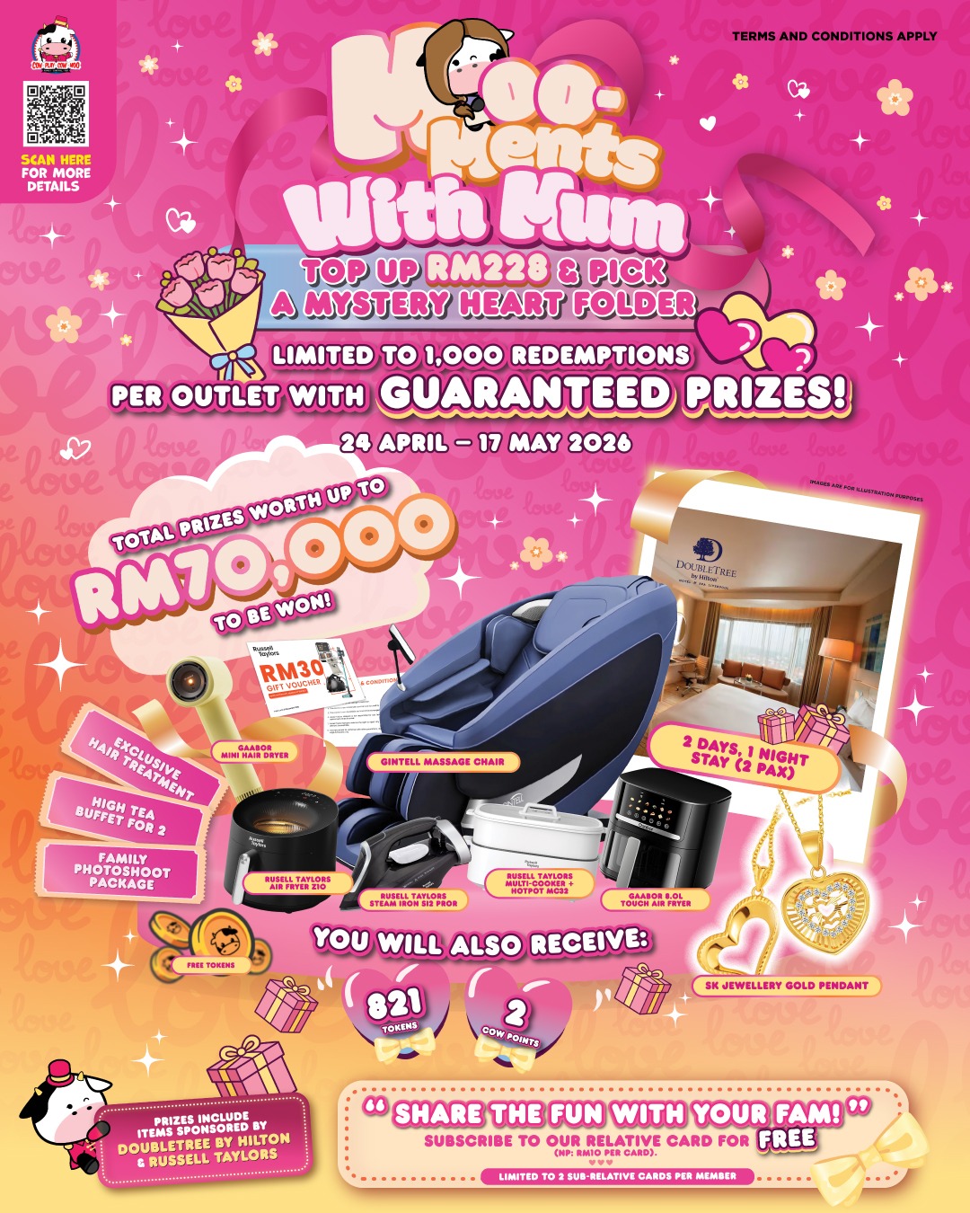 Starting 24 April 2026, top up our exclusive Mother’s Day RM228 Package and stand a chance to win total prizes worth up to RM70,000!